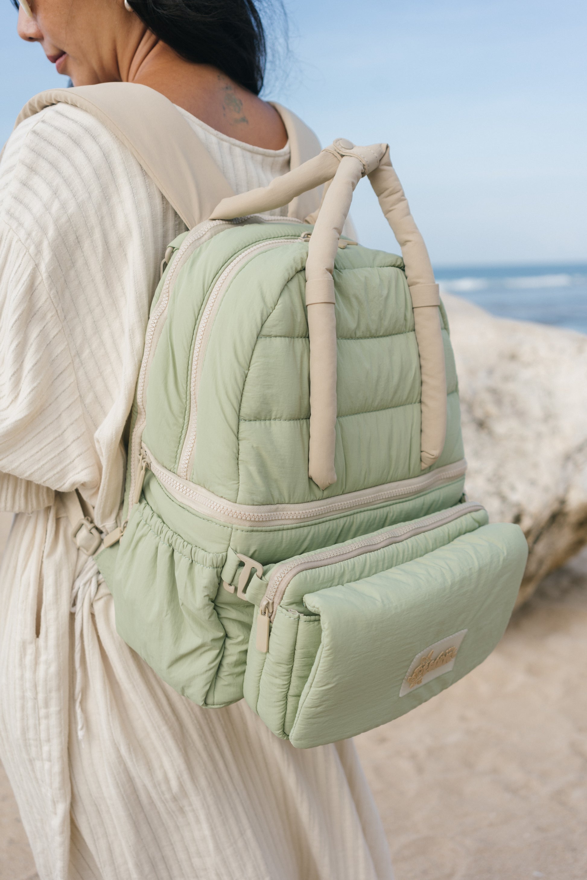 - Detachable wet pouch – for toiletries, pacifiers, spills, or soiled baby clothes